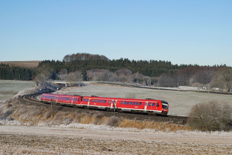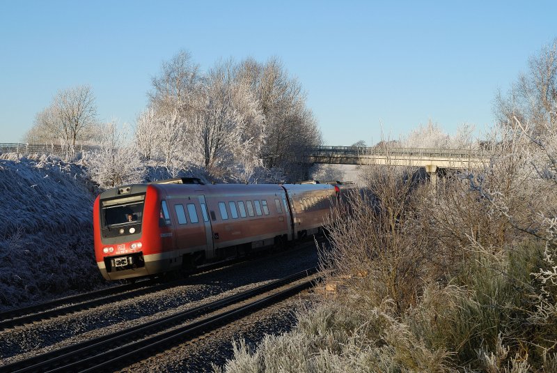 612'er Pärchen mit RE 3782 vor Grobau (20.12.2007)