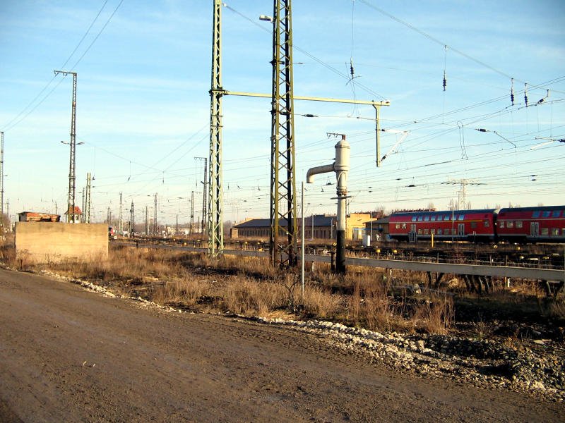 Allein und verlassen steht der Wasserkran am BW Leipzig Hbf West, 10.01.08