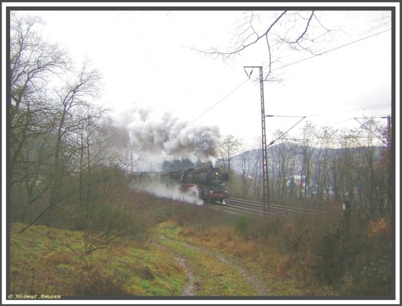 Am 06.01.2008 dampfte 50 3552 der Eisenbahnfreunde Hanau  bei Hain im Spessart mit einem Sonderzug über die Spessartrampe in Richtung Heigenbrücken.