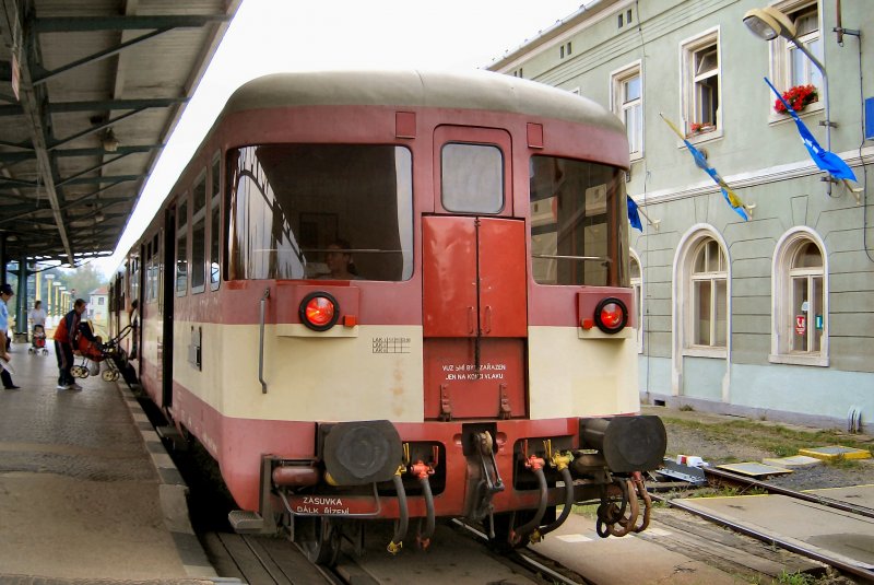 CD_Triebwagen 842 022-6 in Hradek n.N. (Grottau) vor Weiterfahrt nach Liberec, Sommer 2004