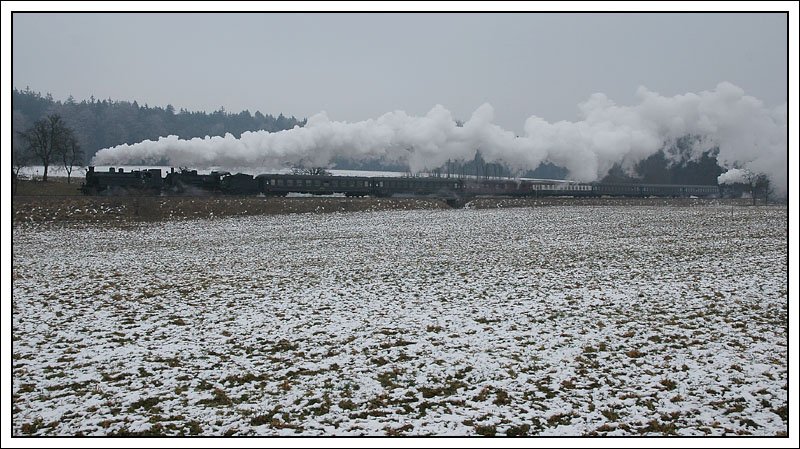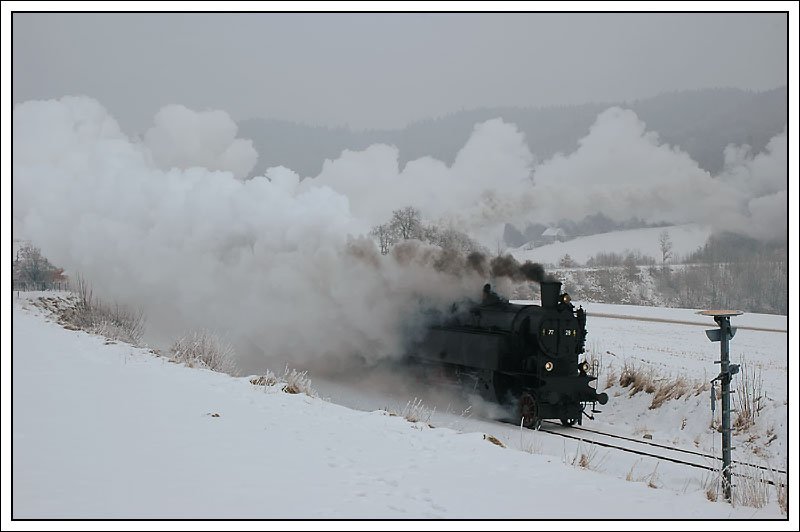 IGE Dampfsonderzug D 16111, mit 77.28 an der Spitze, aufgenommen zwischen Attnang-Puchheim und Hohenbaumgarten am 5.1.2008