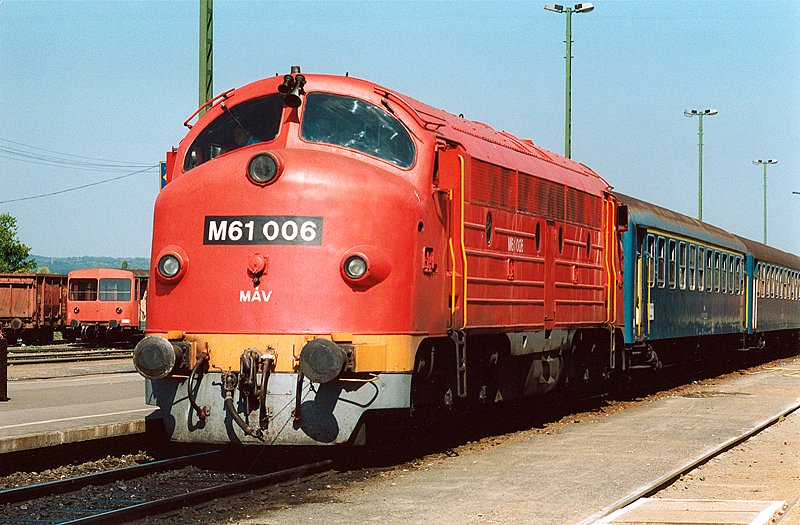 M61.006 steht abfahrbereit mit dem Nahverkehrszug in Tapolca 08/2000