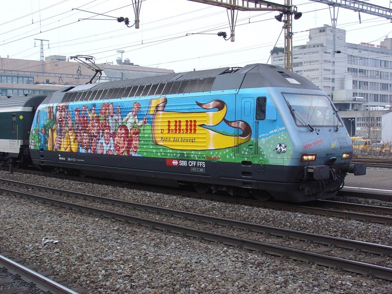 SBB - E-Lok 460 044-1 mit Vollwerbung für die EURO 08 im Bahnhof von Zürich am 04.01.2008