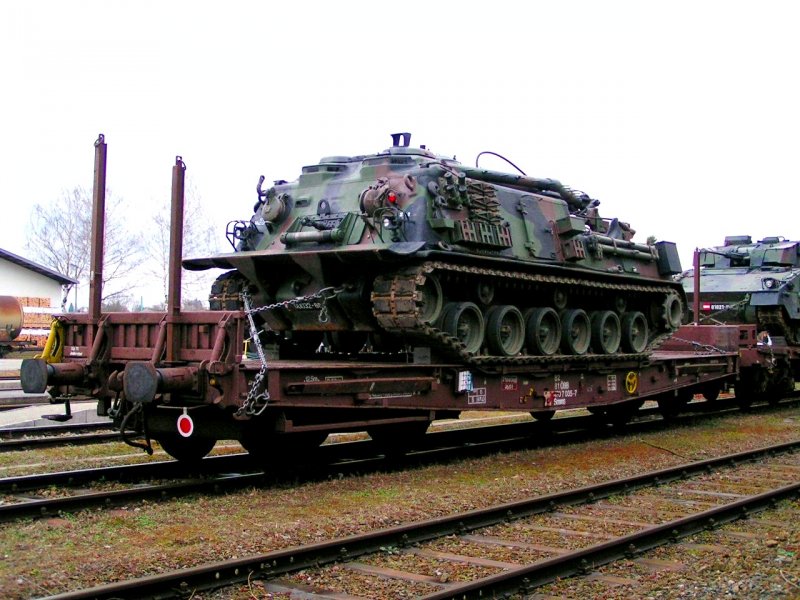 4 Laads, mit Panzer beladen (Bestimmungsbhf. Salzburg); Bhf.Ried i.I.; 071018