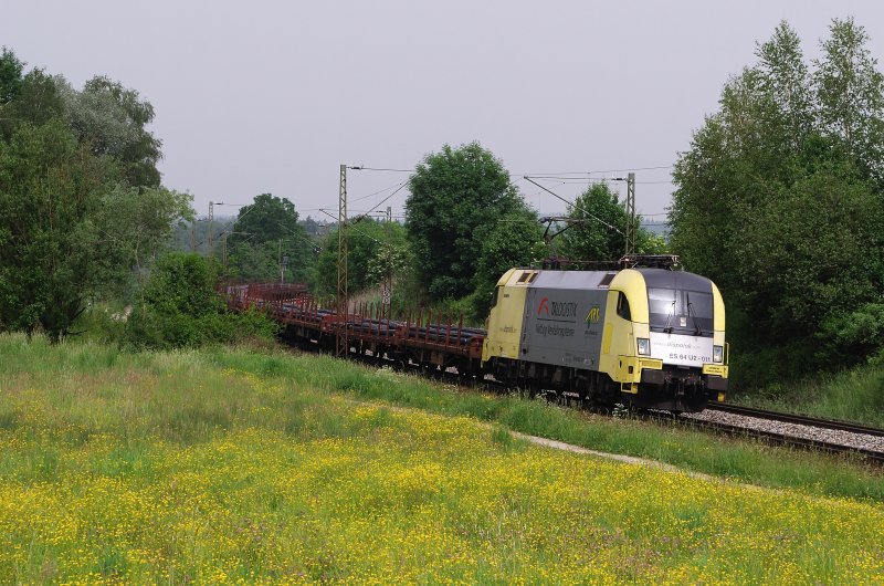 ES 64 U2 - 011 (TX Logistik) mit einem Stahlzug vor Ostermünchen (29.05.2008)