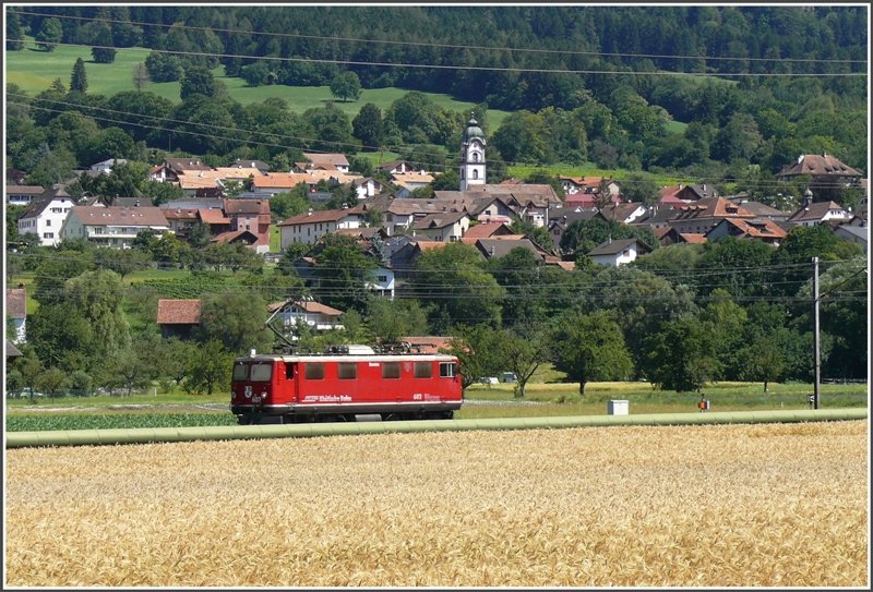 Ge 4/4 I 602 "Bernina" als Lokzug unterwegs bei Zizers. (09.07.2008)