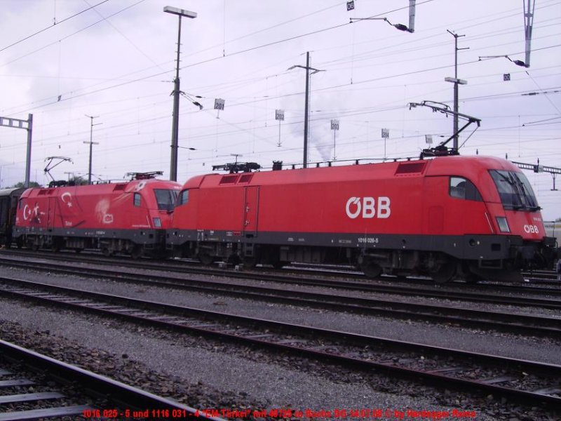 1016 025 und die EM-Türkei-Lok 1116 034 warten vor dem 45725 nach Hall in Tirol auf die Ausfahrt.