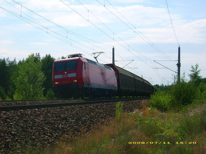 Solche grüne Holztransportwagen waren am 11.07.08 in den von 145 045 gezogenen Güterzug eingereiht. Hat die DB neuerdings auch grüne Holztransportwagen in ihrem Fuhrpark?