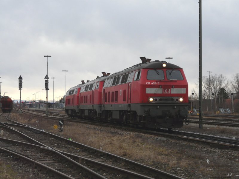 218 439 verlässt mit einer n-Wagengarnitur Aulendorf