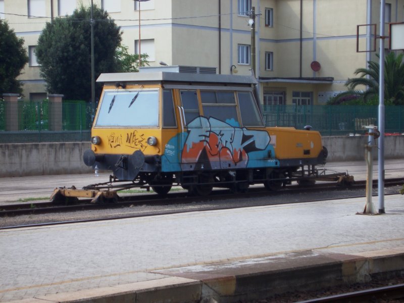 Bahndienstfahrzeug im Bahnhof in Olbia (Sardinien). (Aufgenommen im Juli 2008)