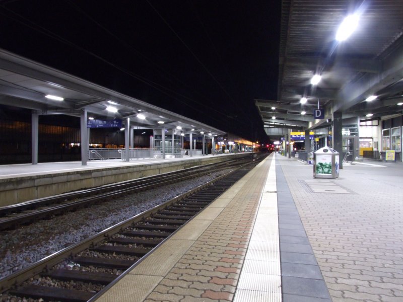 Der Hauptbahnhof Trier bei Nacht, hier fotographiert vom Bahnsteig 11 Nord aus Rtg. Süden (Konzer Richtung).