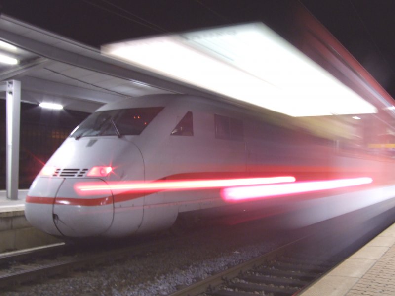 ICE 402-007 "Stendal" kam am Samstag mit 90 min Verspätung als ICE 856 aus Berlin im Trierer Hbf auf Gleis 12 an. (daher also Sonntag). Hier zu sehen, der Triebkopf, fotographiert vom Bahnsteig 11 aus.