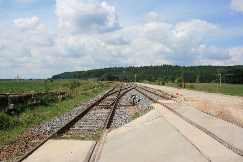 neuaufgebaute Gleisanlage im Betriebsbahnhof Schlagsdorf. Links die Gleislage des ehemaligen Streckengleis Ri. Forst/Lausitz. Rechts: Abstellgleis