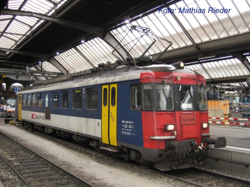 RBe 540 047-8 beim EC Zügebreitstellen im Zürcher HB am Samstag 12.07.08