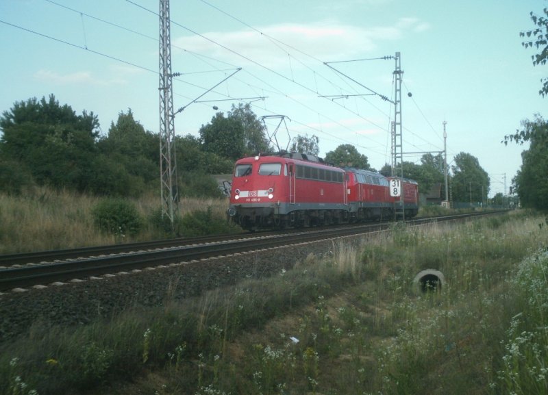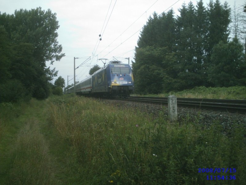 Höhe Peine am 15.07.2008: Werbelok 101 101-4 mit IC Richtung