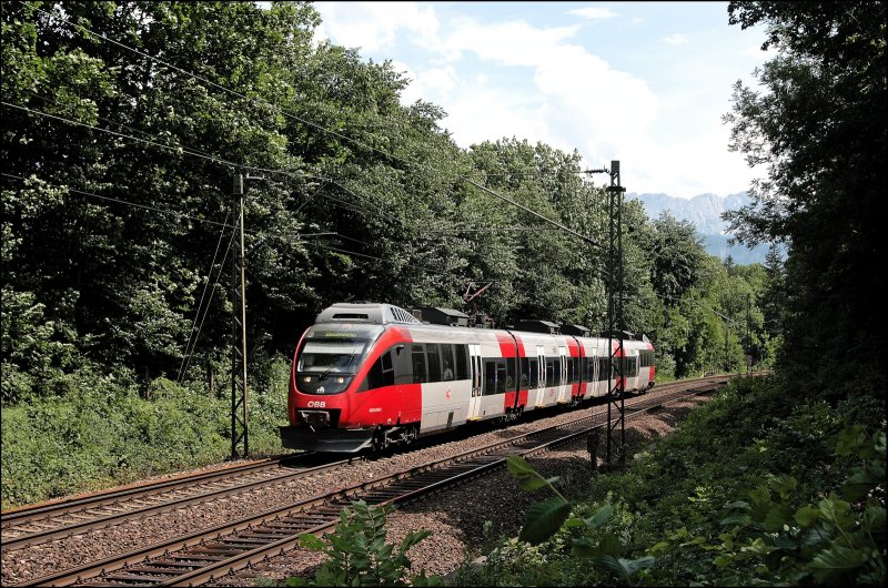 4024 058 ist unweit von Oberaudorf als RB 5118 von Telfs-Pfaffenhofen nach Rosenheim unterwegs. (03.07.2008)