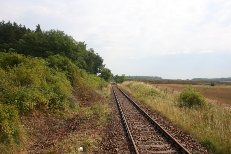 Blick vom Betriebshaltepunkt Schlagsdorf-Kieswerk auf das Streckengleis in Richtung Schlagsdorf