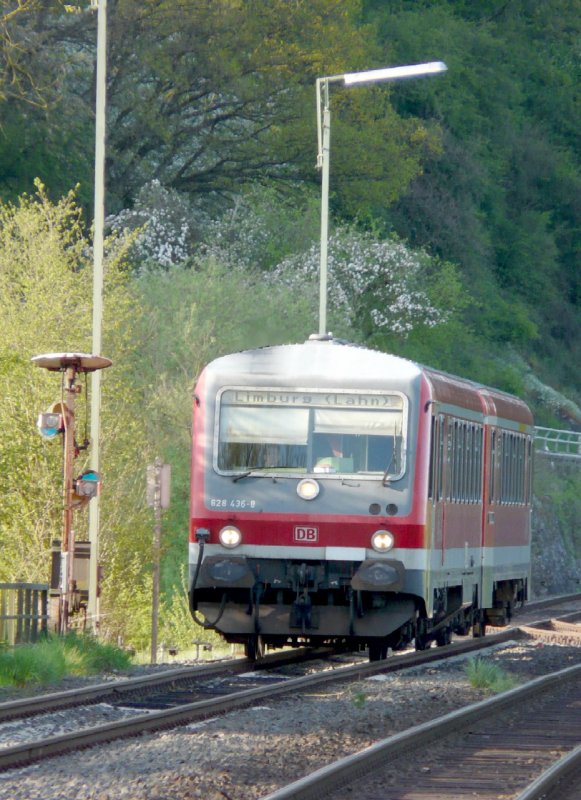 DB - Dieseltriebwagen 628 436-8 bei der einfahrt in den Bahnhof von Stockhausen am 01.05.2008