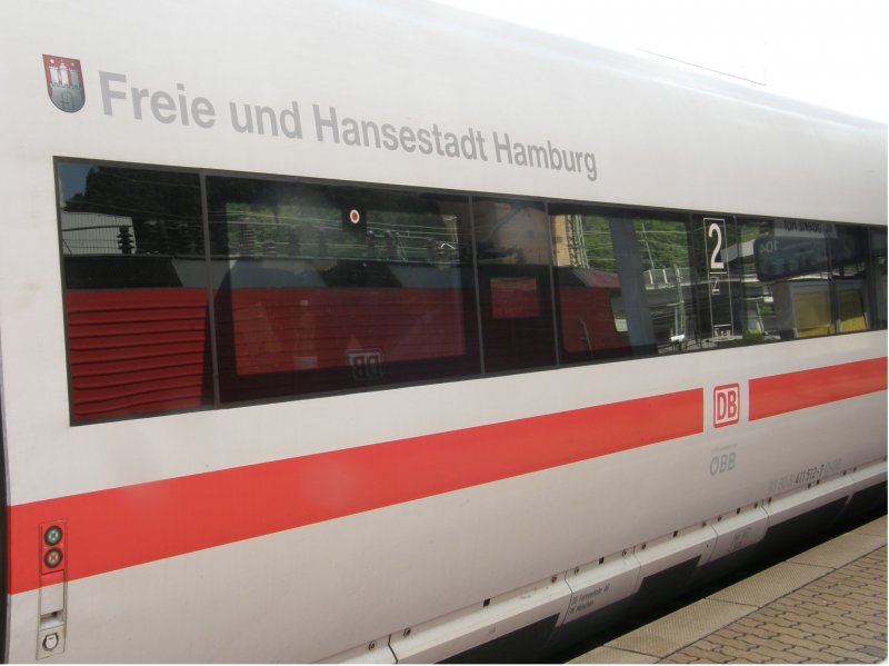 Der ICT 411 012 "Freie und Hansestadt Hamburg", in Verbindung mit der ÖBB (unter DB Keks), im Koblenzer Hauptbahnhof am 12.07.2008.