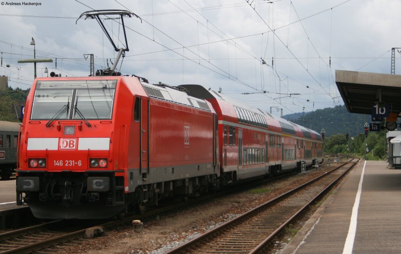 IRE4710 mit Schublok 146 231-6 nach Karlsruhe beim Halt in Hausach am 13.7.08
