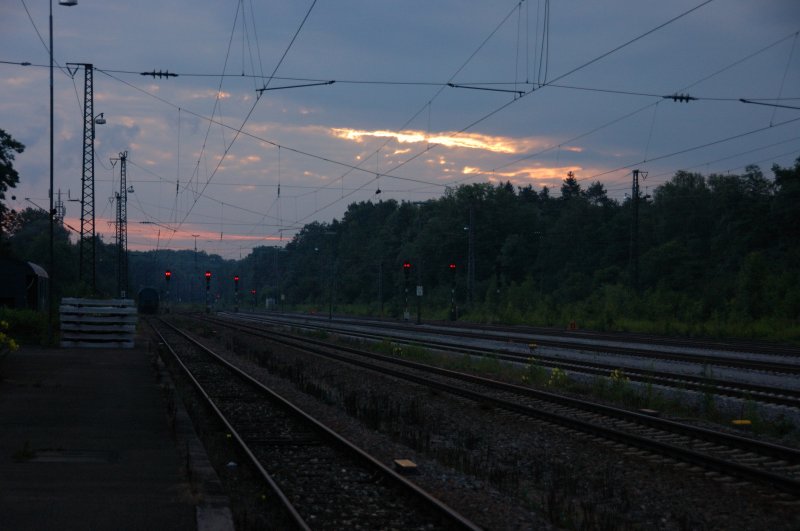 Hier sieht man das Gleisdreieck bei Schwarzach am besten. Wenngleich das vordere Gleis im Bild praktisch nicht mehr genutzt wird. Fotografiert am 14. Juni 2008.