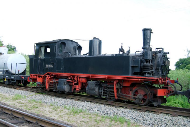 Mit 99 594 ist auch eine sächsische IVk in in Putbus vertreten. Allerdings hatten die IVk die auf Rügen eingesetzt waren, Druckluft-Bremsen und Bremsluftbehälter auf dem Kesselscheitel. 06.07.08