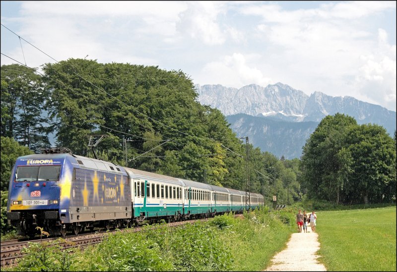 Nach dem Genuss eines Molkegetänkes, kamm die 101 101 mit dem InterCity 82 "PAGANINI", von Verona Porta Nuova nach München Hbf, vorbei. (03.07.2008)