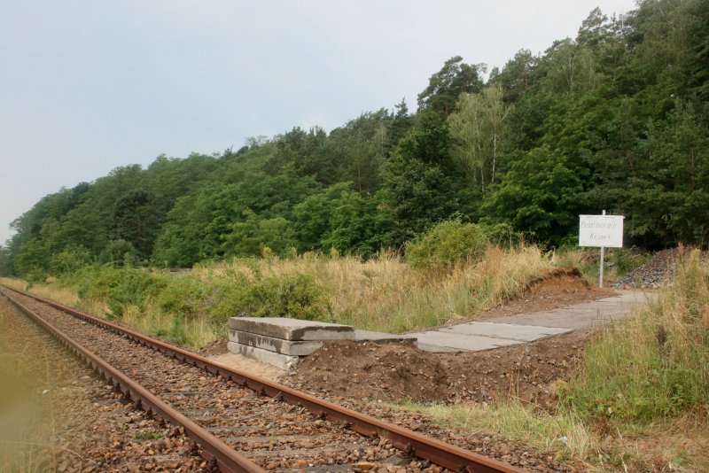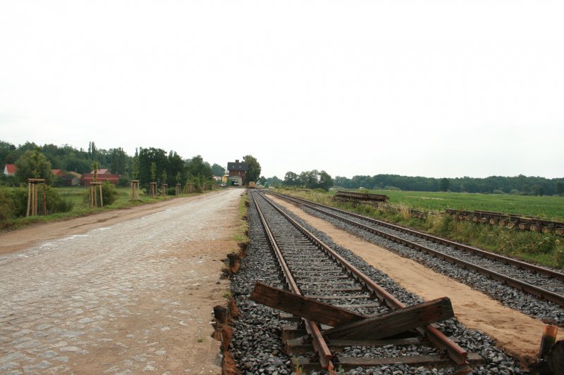 neuaufgebaute Gleisanlage im Betriebsbahnhof Schlagsdorf. Rechts die Gleislage des ehemaligen Streckengleis Ri. Forst/Lausitz. Links: Abstellgleis mit Abschluss