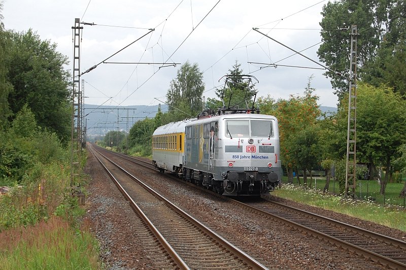 111 027 "850 Jahre München" am 17.7.2008 in der Nähe von Völksen