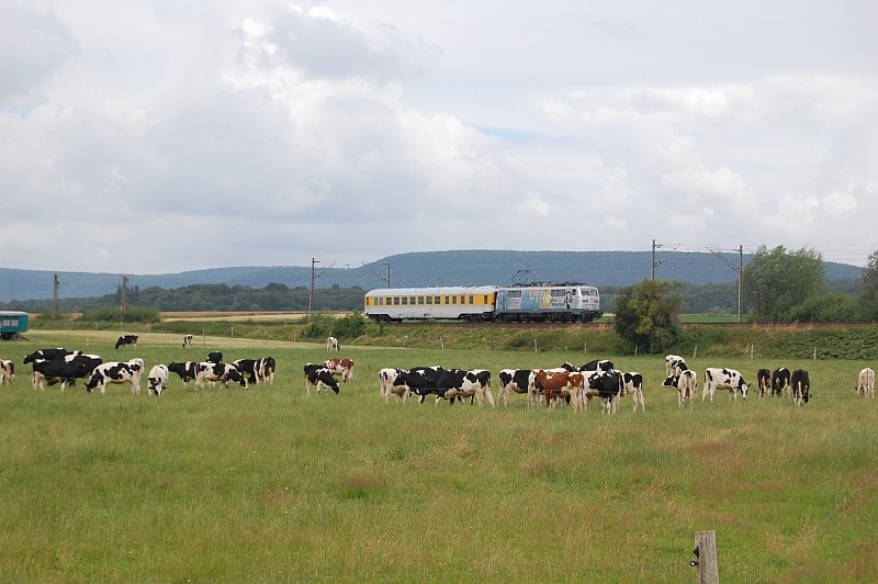 SNCB E-Lok 1501 mit ihrem Sonderzug bestehend aus M 2 Wagen beim Verlassen des Tunnels in der Nähe von Vonêche. 28.06.08 (Hans)