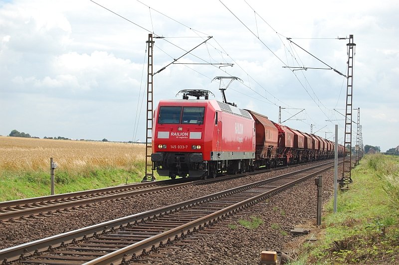 145 033 mit Tannos am 17.7.2008 kurz hinter Holtensen/Linderte