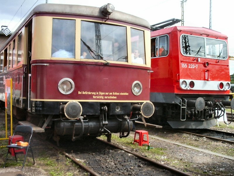 80 jahre Bahnwerk Erfurt, Fahrzeugausstellung mit E-Lok 155 und Triebwagen