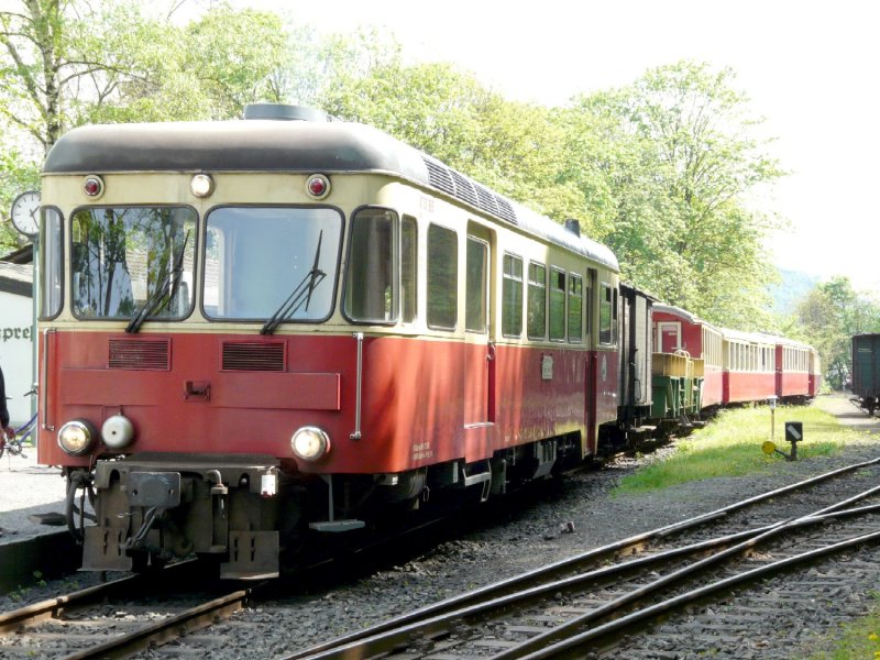 Brohltalbahn - Vulkan Express mit Tiebwagen VT 30 im Bahnhofsareal von Brohl am 03.05.2008