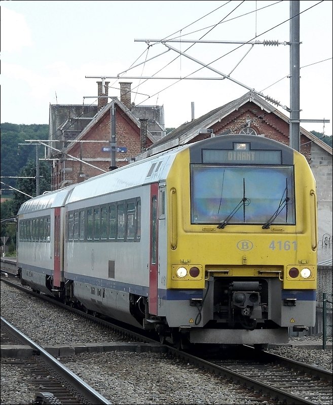 Diesel Triebzug 4161 bei der Ausfahrt aus dem Bahnhof von Beauraing in Richtung Dinant aufgenommen am 28.06.08. (Jeanny)