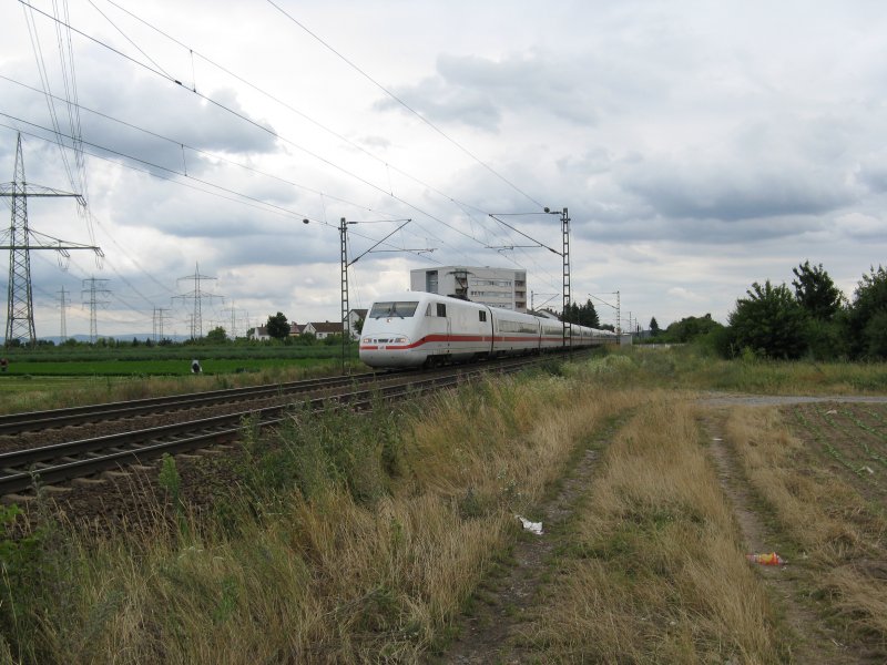 Ein EC101 von Hamburg-Altona nach Chur mit +5.Dieser Zug wurde wegen Bauarbeiten über Groß-Gerau umgeleitet.Am 18.07.08 bei der durchfahrt in Lampertheim.