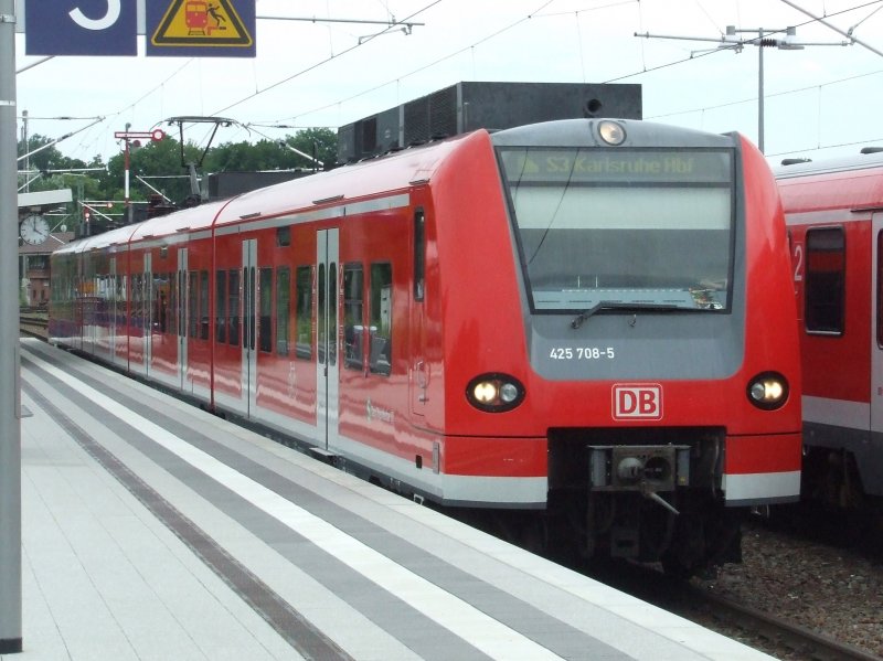 ET 425 208 steht in Germersheim zur Abfahrt nach Karlsruhe bereit. (26.06.2008)