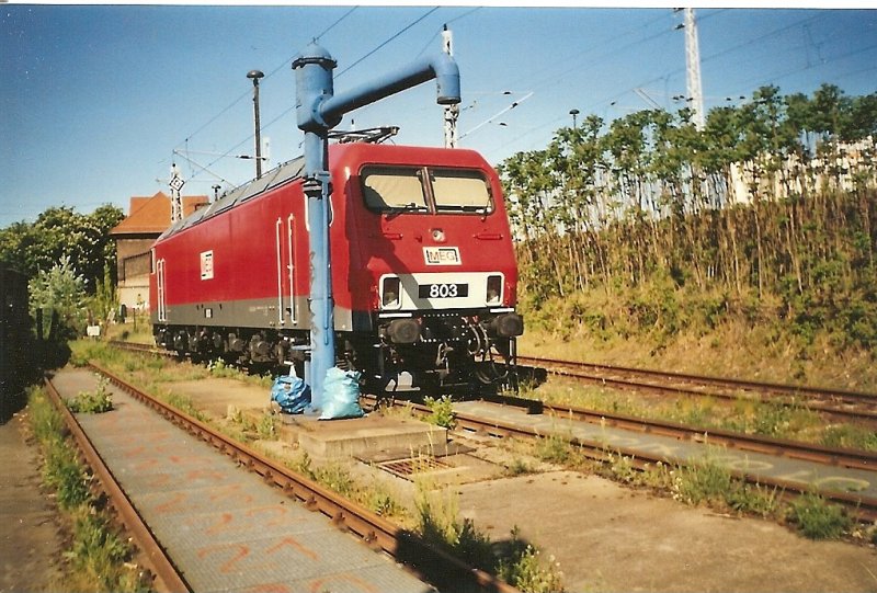 Heute werden Größtenteils Privatbahnloks in der Einsatzstelle Berlin Lichtenberg abgestellt.Hier steht die MEG 803 (156 003)im Sommer 2007 in der Einsatzstelle Lichtenberg.