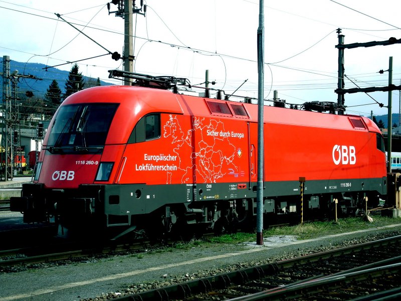 ÖBB 1116260-9 Europäischer Lokführerschein, wartet in Villach Hbf. auf ihren nächsten Einsatz. 7/08