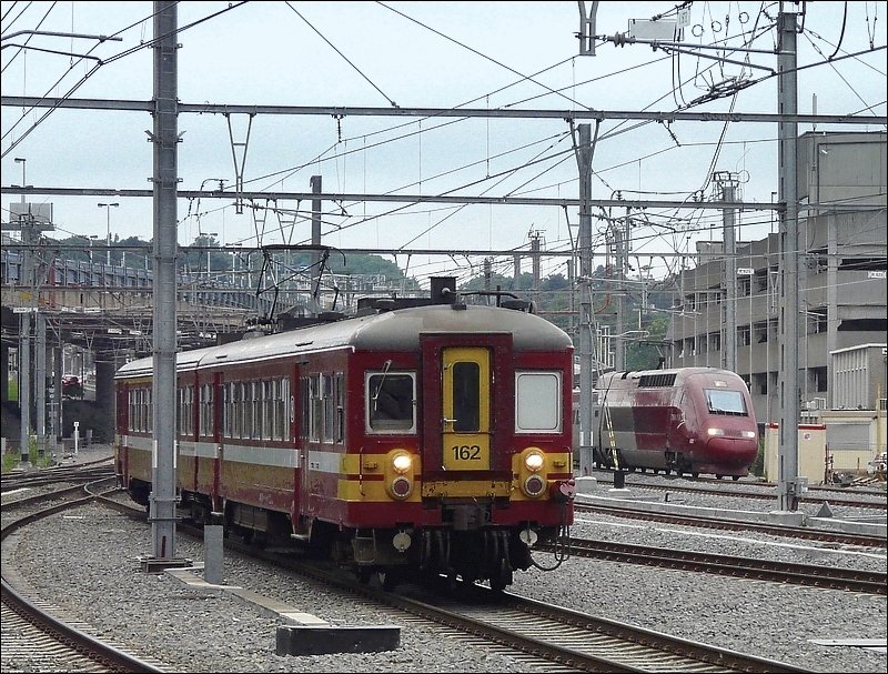 Paralleleinfahrt fotografiert am 28.06.08 im Bahnhof Liège Guillemins: Der Thalys PBKA kommt aus Brüssel, während der Triebzug 162 aus Richtung Herstal kommt. (Jeanny)