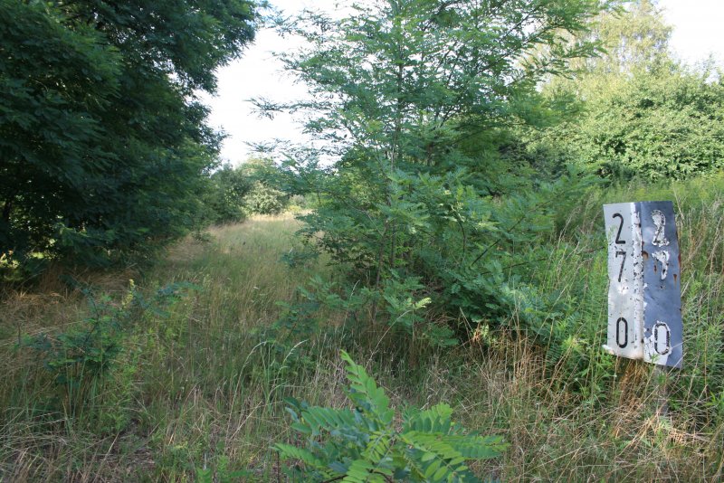 Hoffnungsvoll wer hier die Frage stellt: Wann kommt der nächste Zug? Blick von Frankreich in Richtung Schweiz. Knapp nach dem Ende der Fahrleitungsmasten im Hintergrund befindet sich die Station St-Gingolph Schweiz von wo die Züge in Richtung Sion abfahren.