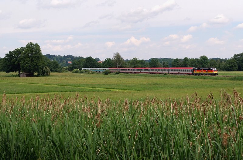 101 141 (Azubis der DB gegen Hass und Gewalt) mit EC 61 vor Haspelmoor (16.06.2008)