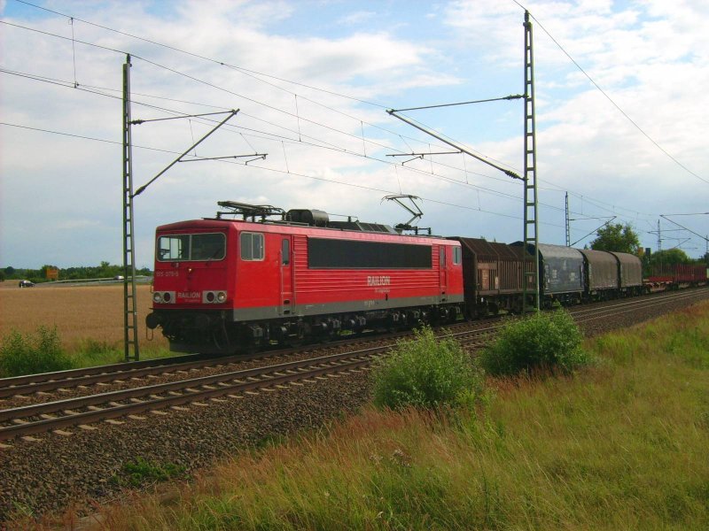 155 075 zieht am 22.07.08 einen Güterzug durch Gräfenhainichen in Richtung Berlin.