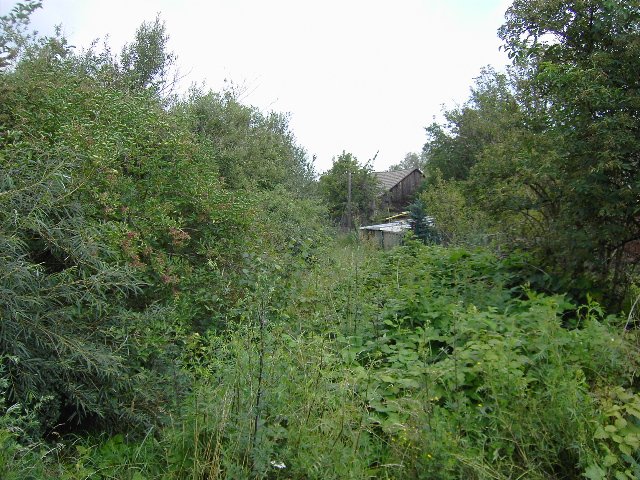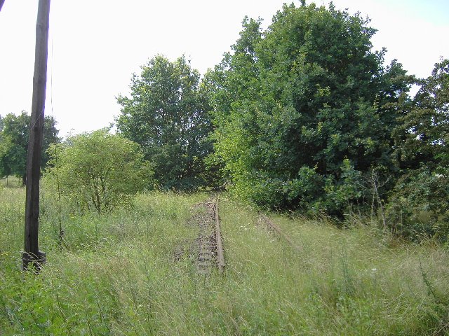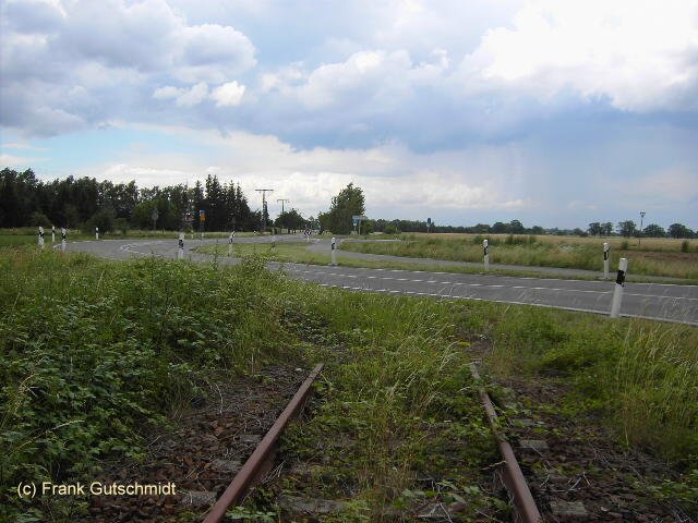 die ehemaligen Bahntrasse im Stadtgebiet Forst/Lausitz. Übergang: Falkenstraße, Blickrichtung Guben