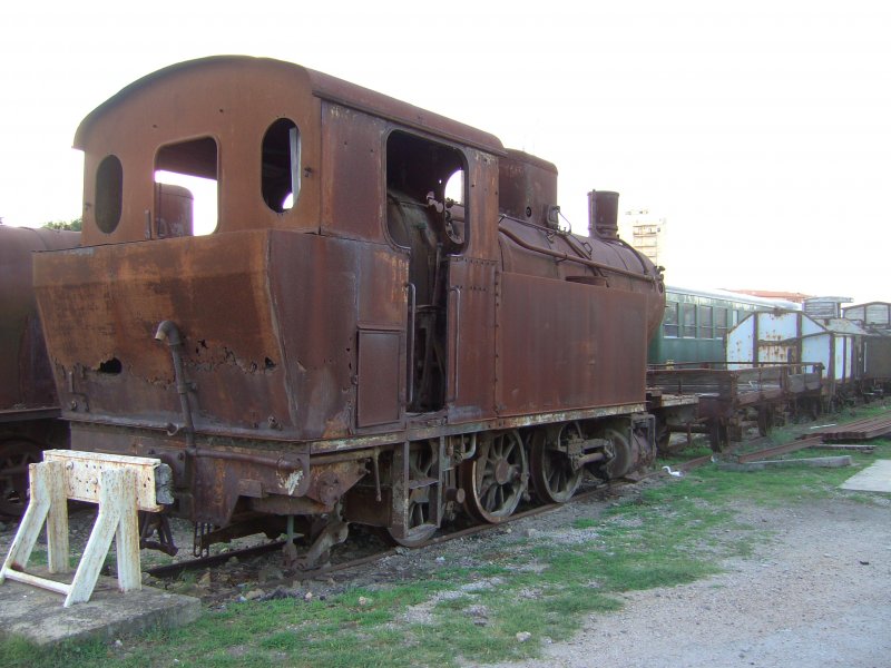 Diese schoene Dampflok rostete im Juli 2008 im Bahnhof Tempio Pausania (Sardinien) vor sich hin.