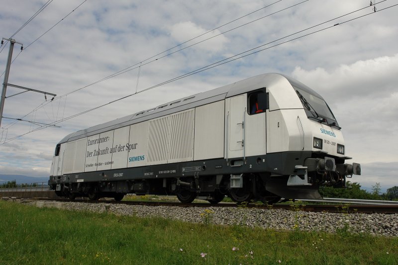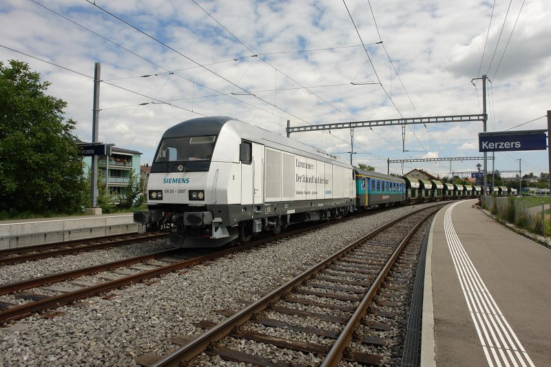 ER 20 2007 et train marchandises pour des tests vers Kerzers 22 juillet 2008