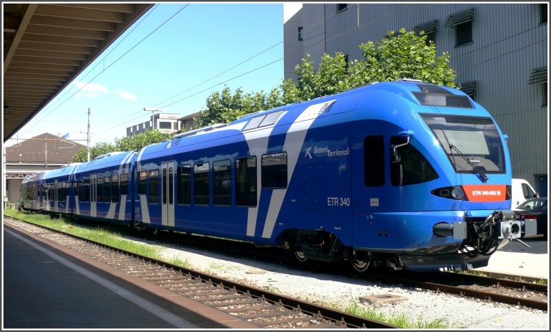Heute traf ich gleich auf zwei neue FLIRT Triebzüge. In Chiasso stand dieser ETR 340-002 SI der Systemi Territoriali, die den Nahverkehr in der Provinz Veneto bestreiten. (22.04.2008)