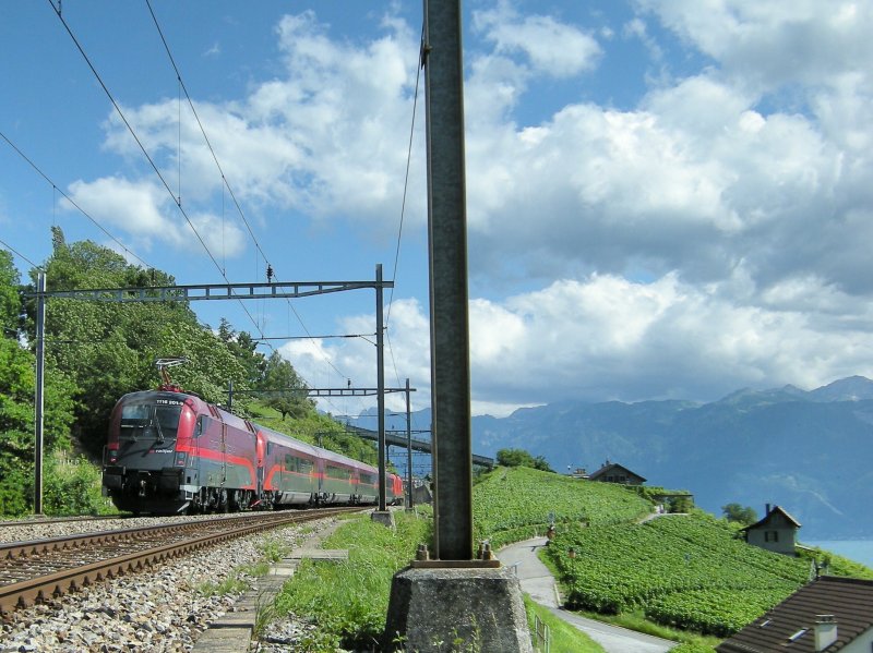 Mein letztes Railjet-Test-Bild sogar mit einem mini Zipfelchen des Lac Léman im Hintergrund.