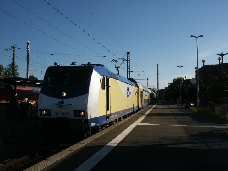 Metronom (6 Wagen) von Hamburg Hbf in Uelzen Gleis 301. Um 8:09 ging es dann weiter nach Hannover Hbf. Aufgenommen am 16.07.08