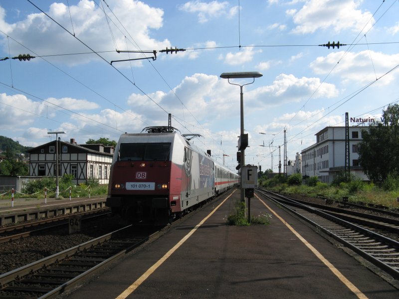 101 070-1 mit IC2296 von Salzburg Hbf nach Frankfurt(Main)Hbf.Am 23.07.08 bei der einfahrt in Weinheim.