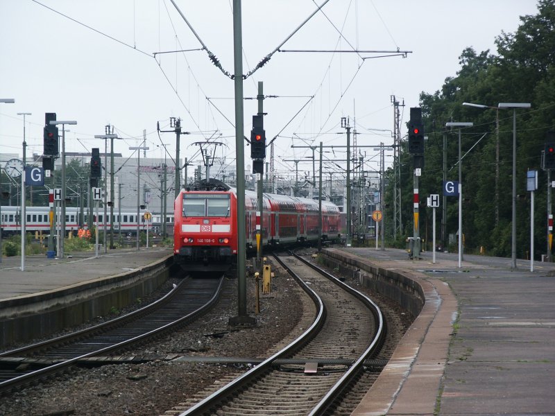 146 mit 5er RE nach Norddeich Mole fährt gerade aus dem Startbahnhof Hannover Hbf aus. Aufgenommen am 22.07.08